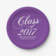 Celebrate your high school or college graduation with personalised plates! The custom  purple class of 2017 paper plates will be a hit at your graduation party! The graduation plates feature a purple background, "class of 2017" in a stylish script font, and a placeholder for your custom text.