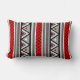 Lumbar pillow in Southwestern / Aztec inspired, modern geometric stripes - rich tomato red and shades of grey / grey with black and white accents