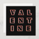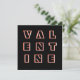 Greet your Valentine with modern minimalist style, with this eye-catching card. The contemporary card displays the word Valentine, divided onto three lines, in red and white, contrasting with the black background. The typography is geometric and angular, with a sleek, space age appearance. The reverse side of the card is plain white for your own individual message. With its stand-out modern look and bold design, this is a Valentine's Day card for maximum impact.