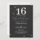 Modern Sparkly Black Glitter Confetti Sweet 16 Invitation