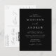Minimalist, modern wedding invitation postcard featuring your wedding details in white lettering with calligraphy script accents on a black and white speckled background. Personalise the back of the chic wedding invitation postcard with your return address, desired response date, wedding website, and instructions for guests using the text templates provided. Designed to coordinate with our Modern Elegance wedding collection.