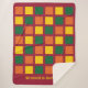 Modern spicy colours Sherpa Blanket with geometric squares in yellow, green and orange, against a burgundy background. There is a placeholder Christian quote - WRAPPED IN GOD'S LOVE - which is customisable, so you can personalise with your name or preferred message. Matching items are available for a coordinated look, especially for autumn fall season. Ideal for those cool nights.