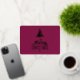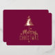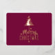 A gorgeous rose gold foil design of a modern spiral Christmas tree and Merry Christmas text on the front of a burgundy colored card.
