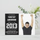 Here is a simple graduation invite designed for your athletic male graduate student. Bold black background with superstar white jersey style font lettering. Side by side layout so your portrait orientation photo is one half, and the relevant party or grad ceremony information is on the other.