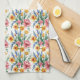 Bright yellow, blue, and pink flowers combine to make a cheerful kitchen towel for spring.