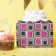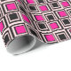 Mid-Century Modern geometric design of stacked, offset squares - mixed media graphic in pastel peach and hot pink with black