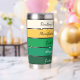 This tumbler design features a clean, modern Saint Patrick’s Day palette arranged in smooth horizontal bands—from deep emerald at the base up to soft cream at the top. The colors create a fresh, trendy look: a rich dark green foundation, layered with medium and bright shamrock greens, accented by a warm golden stripe, and finished with a soft, glowing cream tone. The palette feels uplifting, stylish, and lightly festive—perfect for a chic St. Patrick’s aesthetic. Up to 5 phrases can be placed on the tumbler in a sleek, minimal, modern typeface for a fresh and trendy look.