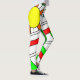 These leggings have a mid-century modern design of a stained-glass look with black lines and circles filled with primary and secondary colours.