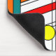 This mouse pad has a mid-century modern design of a stained-glass look with black lines and circles filled with primary and secondary colours.