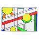 This pillowcase has a mid-century modern design of a stained-glass look with black lines and circles filled with primary and secondary colours.