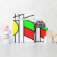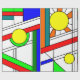 This wrapping paper mid-century modern design has a stained-glass look ith black lines and circles filled with primary and secondary colours.
