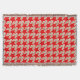 Giant overlapping stars form a Mid-Century Modern geometric tiled pattern - deep lipstick red stars with a light taupe tan background and a crisp white outline