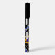 Dress your Samsung Smart Phone for success w/ this striking case featuring Leslie Sigal Javorek's original digital painting of a pair of concentric Stars of David made of multi-pattern strips in shades of royal blue, purple & mustard yellow. 2 customisable text fields are laid out on a sleek gloss black background in a style inspired by 1960's movie credits.