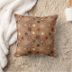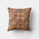 Throw pillow in a mid-century modern pattern of seven-point, outlined stars, in shades of brown, taupe, beige and cream, on a medium coffee brown background