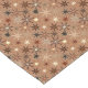 Table runner in a mid-century modern pattern of seven-point, outlined stars, in shades of brown, taupe, beige and cream, on a medium coffee brown background