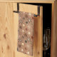 Kitchen towel in a mid-century modern pattern of seven-point, outlined stars, in shades of brown, taupe, beige and cream, on a medium coffee brown background