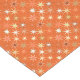 Table runner in a mid-century modern pattern of seven-point, outlined stars, in shades of cream, beige, tan and soft coral orange, on a deep mandarin orange background
