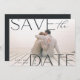 Announce your wedding date in unforgettable style with these elegant and modern photo save the date cards, featuring a full bleed horizontal or landscape orientated photo with "save the date" overlaid in soft black lettering at the corners. Your wedding date appears inside the letter D, with your names and wedding location alongside. Personalise the back with additional details, such as your wedding website.