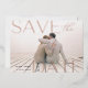 Announce your wedding date in unforgettable style with these elegant and modern photo save the date cards, featuring a full bleed horizontal or landscape oriented photo with "save the date" overlaid in real rose gold foil lettering at the corners. Your wedding date appears inside the letter D, with your names and wedding location alongside. Personalize the back with additional details, such as your wedding website.