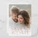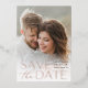 Announce your wedding date in unforgettable style with these elegant and modern photo save the date cards, featuring a full bleed vertical or portrait orientated photo with "save the date" overlaid in real rose gold foil lettering along the bottom. Your names, wedding date, and wedding location appear alongside in modern lettering. Personalise the back with additional details, such as your wedding website.
