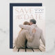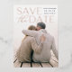 Announce your wedding date in unforgettable style with these elegant and modern photo save the date cards, featuring a full bleed vertical or portrait oriented photo with "save the date" overlaid in real rose gold foil lettering across the top. Your names, wedding date, and wedding location appear alongside in modern lettering. Personalize the back with additional details, such as your wedding website.