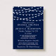 Modern String Lights On Navy Blue Bridal Shower Invitations.