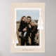 Celebrate the season with our elegant, minimal Holiday wall art print, a refined décor piece that brings together modern charm and timeless sophistication. Your chosen photo is showcased at the centre, framed by a bold, clean stripe border set against a warm beige background for a contemporary and striking look. Hand-drawn minimalist pine illustrations with subtle gold detailing accent the corners, adding a festive yet understated touch that complements any space. Designed with a chic, neutral colour palette and featuring original artwork by ©Moodthology Papery, this print is perfect for displaying cherished holiday memories while elevating your seasonal décor. Ideal for those who appreciate clean design, festive spirit, and meaningful moments.