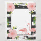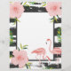 Cute little print with messy black and white stripes and pink flamingos and flowers.