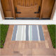 Modern simple striped doormat in neutral colours. Colours include slate blue, grey and a touch of teal. A pleasing first impression for visitors to your home.