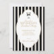 This double-sided New Year’s Eve party invitation features bold stripes paired with a contemporary baroque-style frame, highlighted by a watercolor-sketched champagne glass with a black bow. A blend of clean modern type and elegant script brings a refined, statement-making touch to the overall design. Easily customize it by clicking "Personalize this design".
