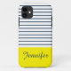 Modern white, blue and yellow striped pattern with custom name