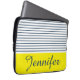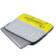 The sleeve is made of nice feeling material and seems very durable. I'm not sure how easy it'll be to clean, but the construction seems sound and the fabric is quick thick. I also like the double zipper. The printing is lovely and appears durable. The white on black contrast is nice, and the design very elegant.
