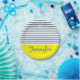 Modern white, blue and yellow striped pattern with custom name