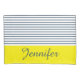 Modern white, blue and yellow striped pattern with custom name