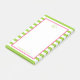 This 4 x 6 notepad that has a lime green and white striped background with a bright pink border and a lime green 1st initial at the top centre and full name at the bottom is perfect for any woman you know! With its fun striped pattern is classic and preppy and would look wonderful on any desk and make a perfect gift for friends, co-workers or family.