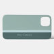 Elegant and modern custom name phone case with matte-coloured light teal, baby blue, and dark teal vertical stripes.