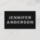 This modern business card features a black background with your name on the front in a white retro font. The back of the card has your name, job title, and all of your contact info. Background and text colors are all customizable.