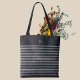 Modern horizontal stripes in charcoal black and chalk white creates a chic and trendy look on this tote bag. Stylish and fashionable with the design mirrored on both sides. Add initials or custom text on a strip of black for a custom monogrammed accessory tote bag.