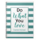 Modern notebook featuring a white stripes pattern with accenting custom colour and the phrase "Do What You Love".