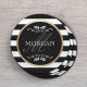 Modern Stripes Gold Border Family Name Round Paper Coaster