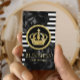 Modern Stripes Gold Crown Logo Black Floral Business Card