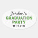 This modern Grad Party oval sticker features the word "Graduation Party" in green against a light grey diagonal stripes background. Check out matching graduation invitation and items here https://www.zazzle.com/collections/class_of_2017_graduation-119637323833384053?rf=238364477188679314