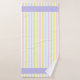 Beautiful modern vertical stripes in light multicolor pastel colours with lavender horizontal stripe Bath Towel Set. Text can be personalised. Text only on one side.