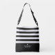 Modern Stripes with Upscale Heart Monogram - Black Crossbody Bag