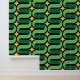 Adding a touch of art and elegance to any room, this unique wallpaper design combines bright green colours with unique geometric patterns. This design is perfect for decorating private and public rooms, adding a touch of art and elegance to any space.