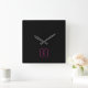 Modern Styled Initial Monogram | Pink & Black Square Wall Clock