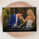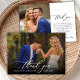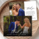 Chic Modern Elegant Calligraphy Script Wedding 2 Photo Thank You Card. Stylish wedding thank you template featuring a full vertical photo on the front with the text "Thank You" in a whimsical swirly hand lettering typography script swash tail font in white overlay on the picture and a reverse side one (1) photo and pre-made thank you message. 2-sided card with 2 photo. Easily to personalise your name and thank you message. If you prefer to handwrite your note, just delete the sample text to make more space. If You need help or matching item, please contact to me!