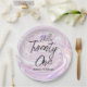 Modern, abstract party products with liquid paint marbling effect in pastel pink and lavender hues. Modern Liquefied Marbling Lines 21st birthday Paper Plates.