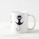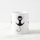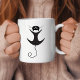 Mug or cup shows a stylish, modern black cat silhouette. The cat hangs or hugs the product, trying not to fall.