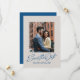 This stylish save the date features a retro inspired script "save the date" in a trendy blue under a single photo on a beige background along with simple custom text. The back of this modern save the date has a coordinating blue stripe along with a horizontal photo, room for a custom message and a QR code for your wedding website. This vertical design is great for a trendy and stylish couple and it's a great way for the engaged couple to share wedding information with friends and family. Find more colors and styles in the collection by Lea Delaveris Design. Also available as a digital save the date download.